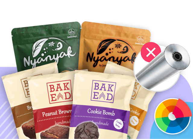 Kamu hanya order minimum 5000pcs dan bebas cetak kemasan fleksibel dengan unlimited desain serta pilihan warna apapun tanpa perlu investasi plat